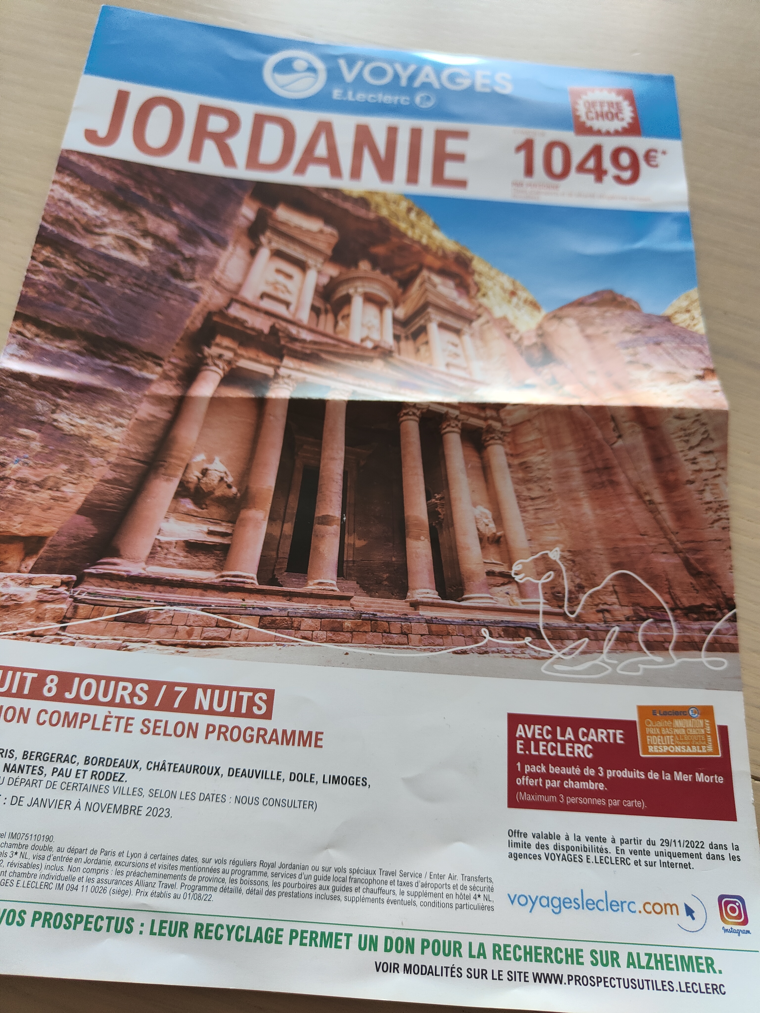 Retour du « Circuit reflet en Jordanie » Le 1er avril 2023. A fuir. Hôtel Amman big ben: chambre sale, pas nettoyé, pas de serviette, petit déjeuner et dîner: pas de couverts, buffet même pas digne d’une cantine scolaire, riz poulet toute la semaine lorsqu’il réapprovisionne le buffet sinon vous n’avez plus rien à manger à 19h40. Guide incompétent, non diplômé venant de quitter un poste chez Amazon. Organisation 0, attente de 2 heures à l’aéroport à l’atterrissage. Repas attrape touriste, cantine, pas de repas typique de Jordanie. Séjour écourté départ de nuit le 7e jour de ce fait pas de nuit, et petit déjeuner du 8e jour. Bus sale…. Circuit à fuir, ne vaut pas son prix, TOP OF TRAVEL VOLEUR! Pourtant la Jordanie est un très beau pays. 2e commentaires : Ce jour nous sommes le 4 août , réclamations et courriers recommandés fait depuis 4 mois à votre encontre et aucun retour de votre part!!!!!!!!